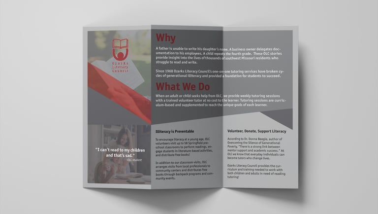 The result is a well-structured printed material that effectively supports the communication efforts of Ozarks Literacy Council and helps build trust with its audience.